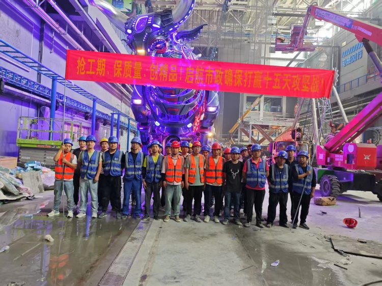 活動現(xiàn)場,項目施工團隊整齊列隊,在巨型機械裝置下莊嚴宣誓“搶工期、保質量,創(chuàng)精品!啟航市政確保打贏十五天攻堅戰(zhàn)!”此次攻堅聚焦老電廠夔牛天街項目消防水電工程,工程完工后,將筑牢項目安全根基,完善基礎設施服務,為后續(xù)參觀群眾的安全保障再加碼。